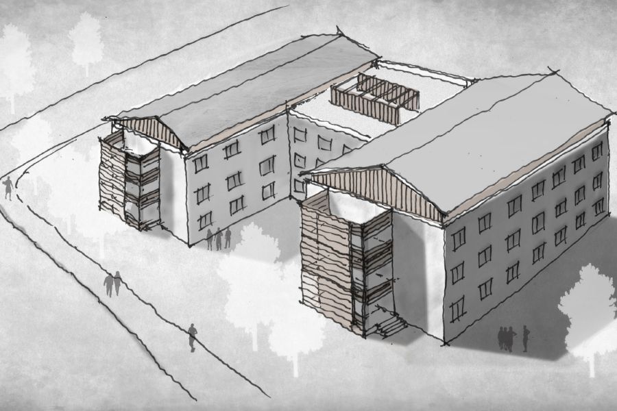 The most economic solution taking into consideration of the patient’s needs and at the same time the speed of refurbishing the main buildings of the clinic is the provision of patient’s rooms in modular construction. At the same time it becomes necessary to relocate the clinic’s own school premises.