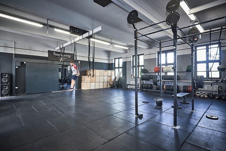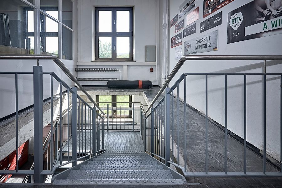 Hoyos Architekten erarbeitet ein räumliches Konzept für die „Crossfit-spezifischen“ funktionalen Abläufe, das die Umbaumaßnahmen auf ein Minimum beschränkt. Durch das Einführen einer neuen Verbindungstreppe an strategisch ausgeklügelter Position aus dem EG in das Untergeschoss zu Umkleiden und Sanitärbereich kann die vorgefundene Raumanordnung größtenteils erhalten bleiben.