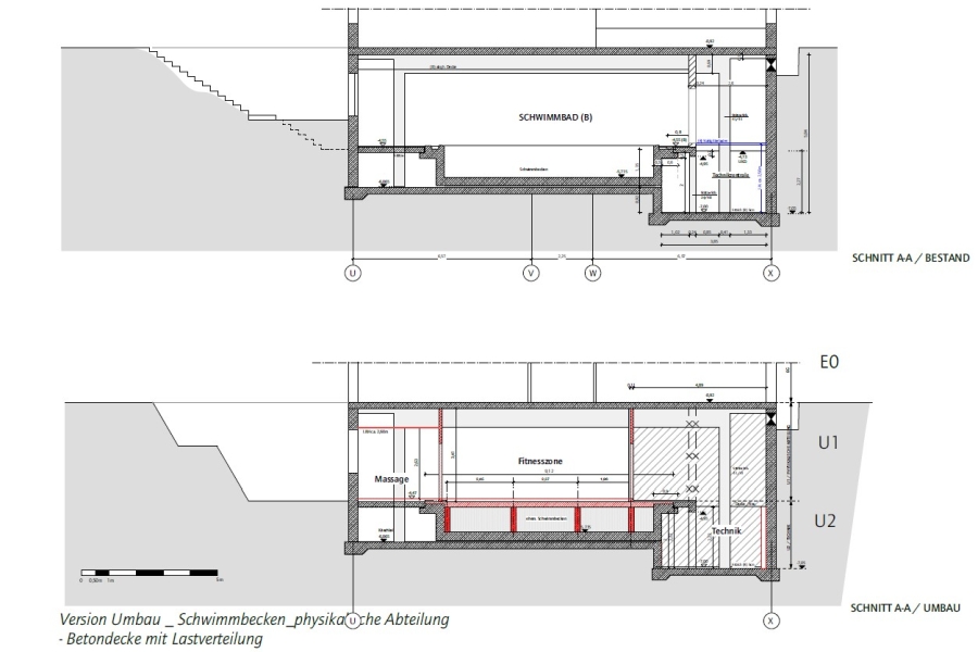 Die Klinik wird als Ganzes den veränderten Anforderungen in Nutzung und Betrieb ertüchtigt. Neue Funktionsstellen werden kosten- und flächeneffizient im Bestand eingebunden. Das Schwimmbad im UG wird stillgelegt und freiwerdende Flächen werden in eine neue physikalische Abteilung mit angrenzenden Fitness-, Aqua- und Saunabereich für Therapie und Erholung umgebaut. Hoyos Architekten verantworten einen modernen, hellen und zeitgemäßen Entwurf und die entsprechende Ausführungsplanung.