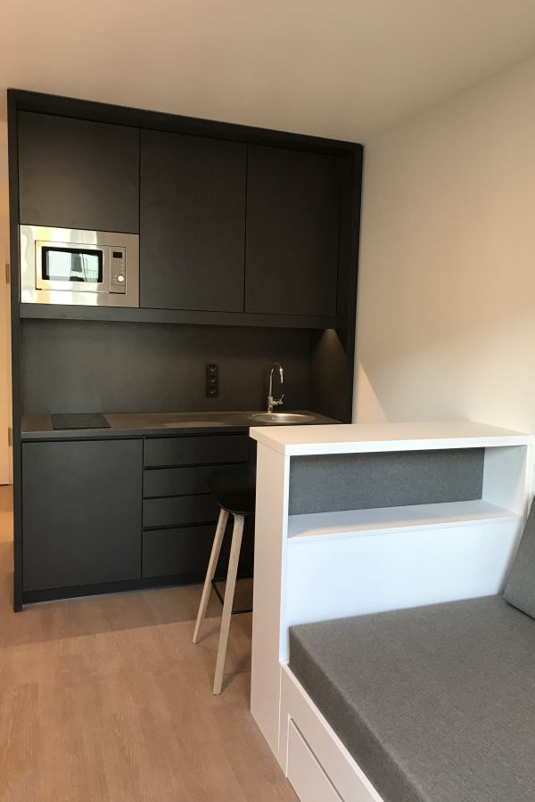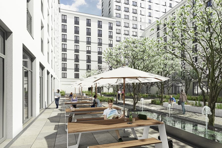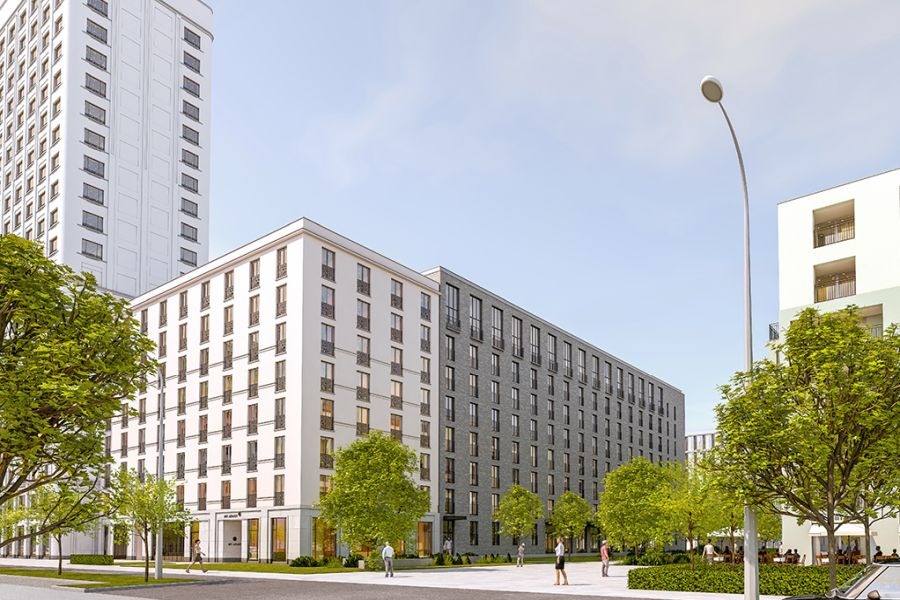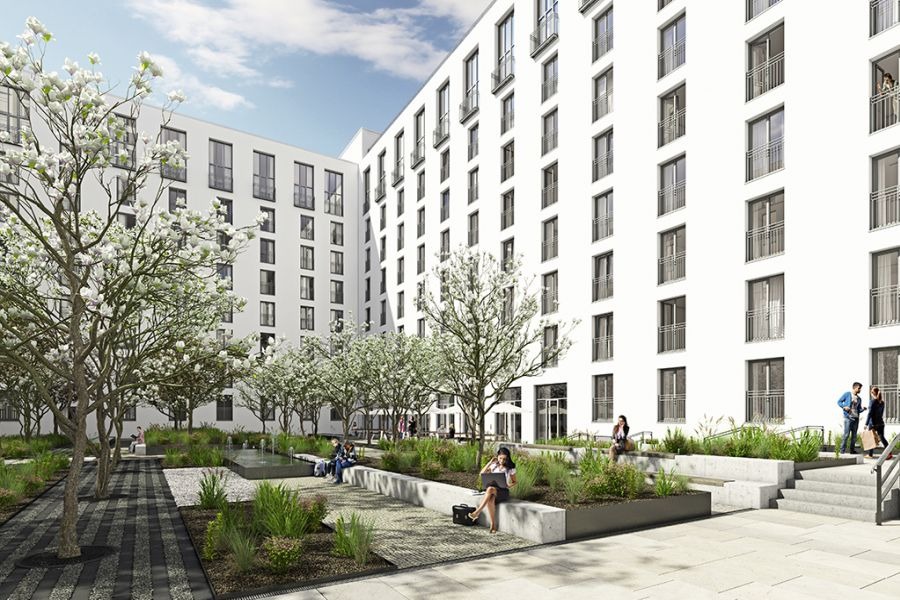 Der Rohbau des Gebäudes für 357 Apartments wird von Hoyos Architekten für den weiteren Ausbau übernommen. Der Entwurf stammt von Steidle Architekten. Zeitdruck, knapper Budgetrahmen und die Größenordnung von 357 Apartments sind die Vorgaben.