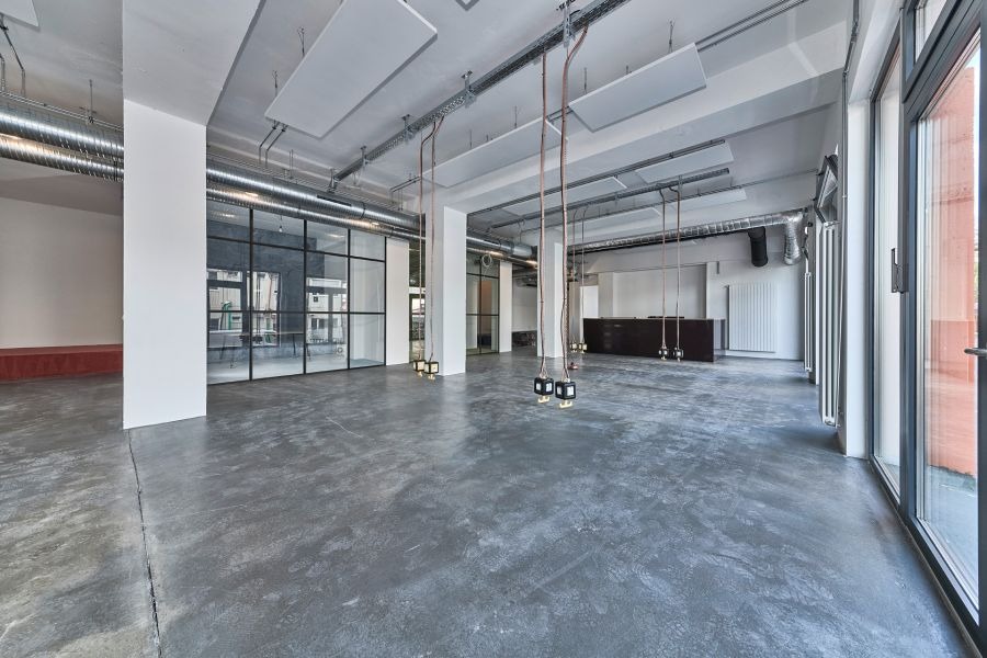 Im Werksviertel ist alles im Umbruch. So sind wir Ende April 2019 aus unseren bisherigen Räumlichkeiten in Werk 7 ausgezogen, um Platz für einen Umbau zu machen. Dafür durften wir unser neues Büro selber als Loft in der stillgelegten Table Dance Bar planen. Das Ergebnis nach dem Entkernen und der Öffnung der Fassade lässt sich sehen. Helle Räume in einer technisch-nüchternen Umgebung.